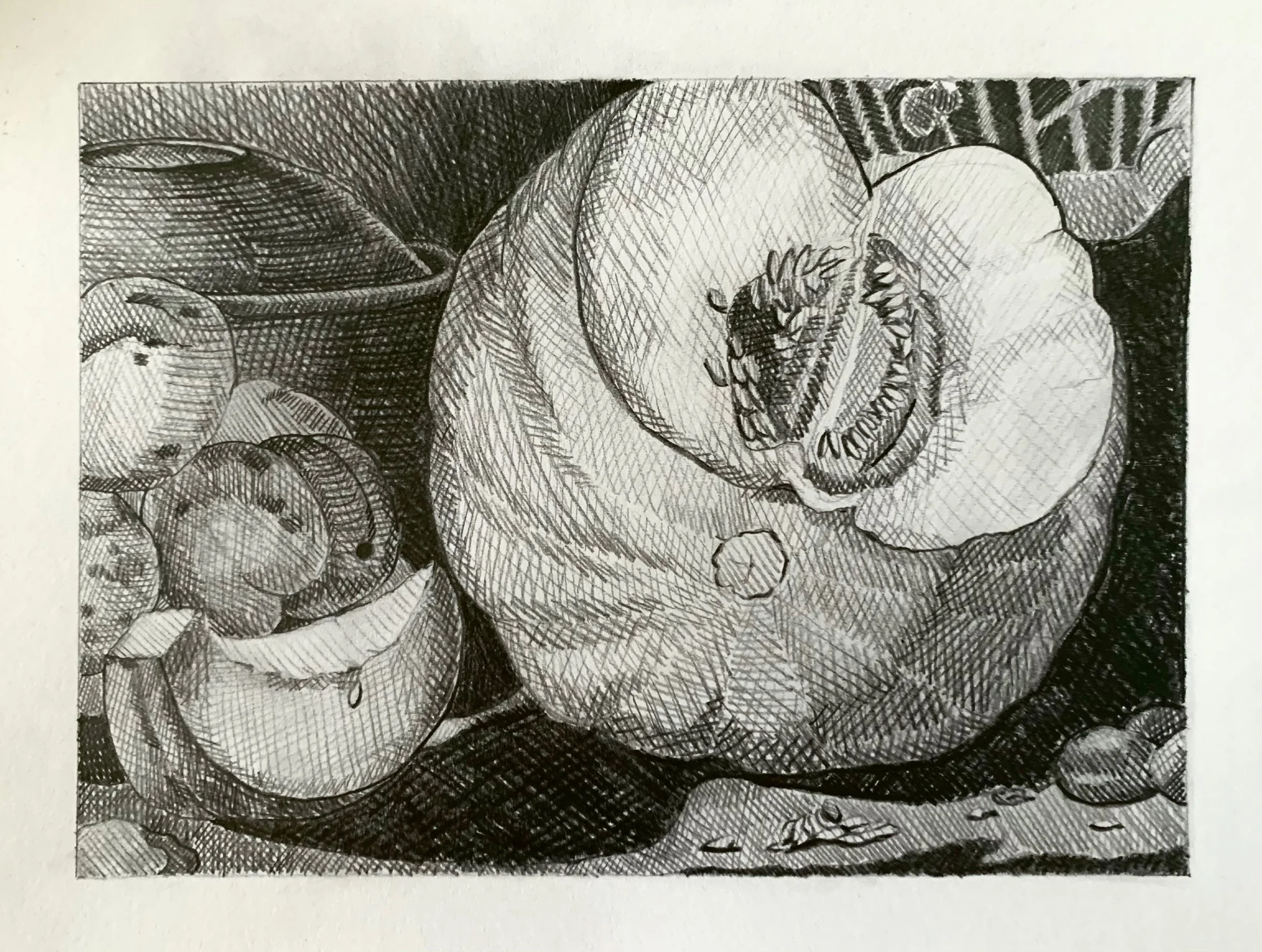 Cross-hatch drawing of The Afternoon Meal (La Merienda) by Luis Egidio Meléndez